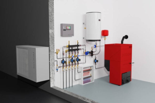 Der BIODOM Pelletkessel 27A ist bereits mit einer Steuerung ausgestattet, die sowohl den Kessel als auch die Wärmepumpe im Hybridbetrieb regelt.