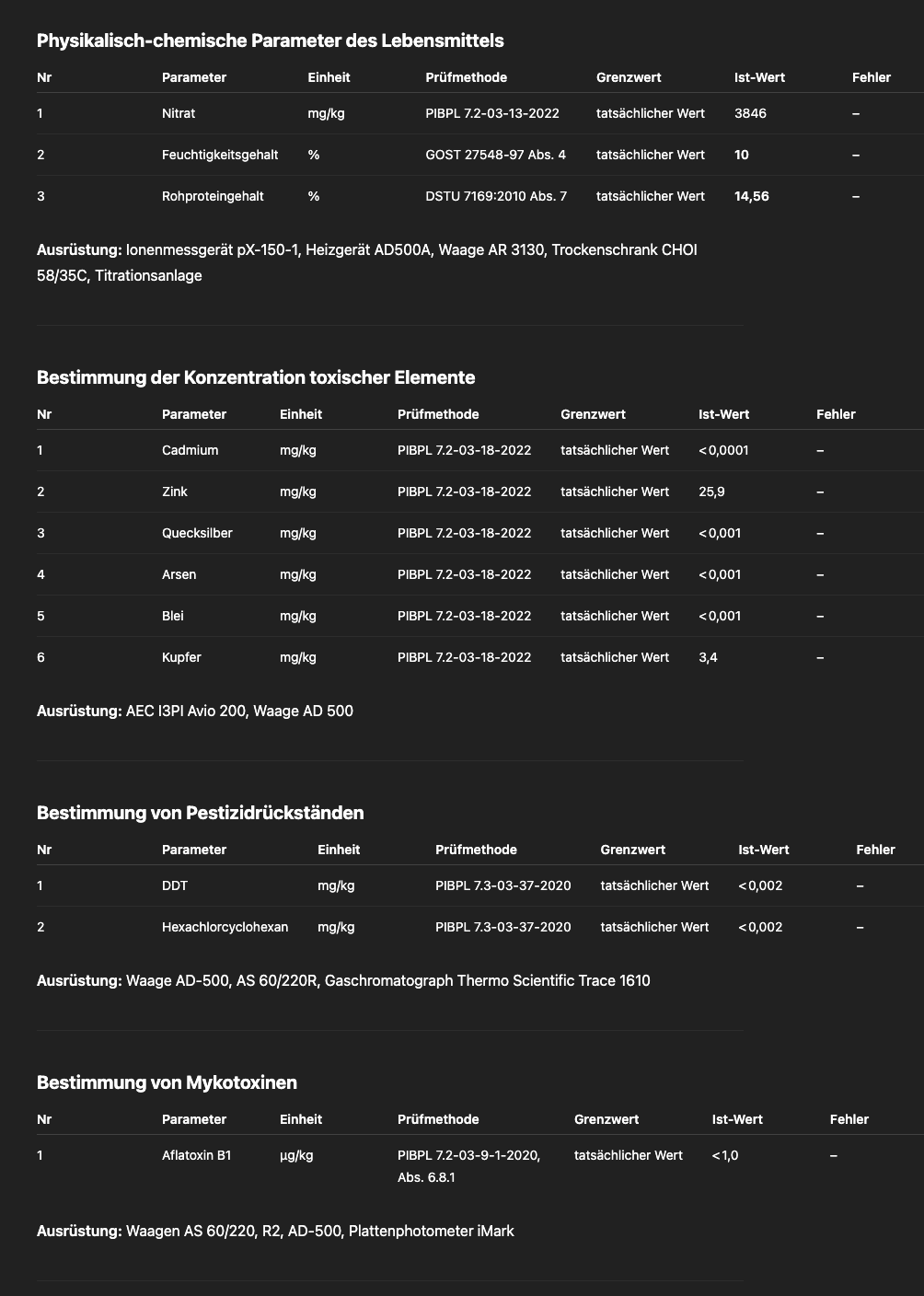 Herstellungsprozess: heißluftgetrocknet, zerkleinert, pelletiert